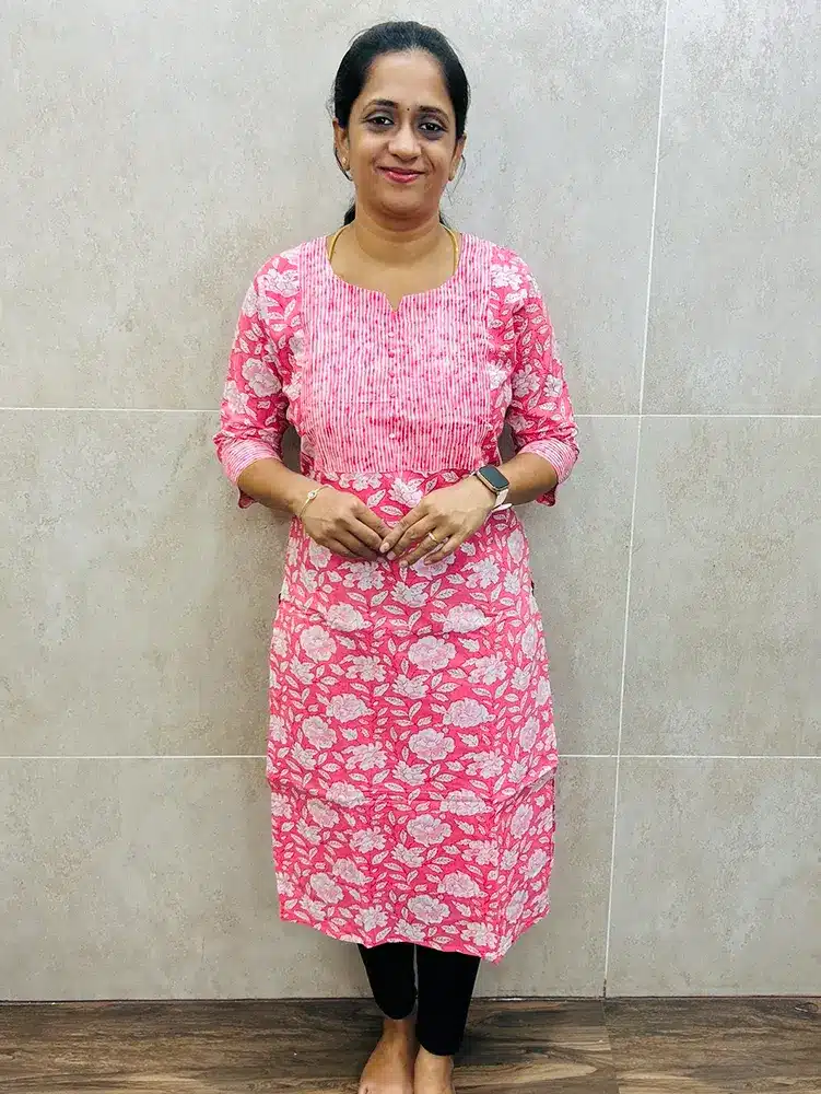 Printed Jaipur cotton top (cotton lining) with Potli work on yoke (straight cut)