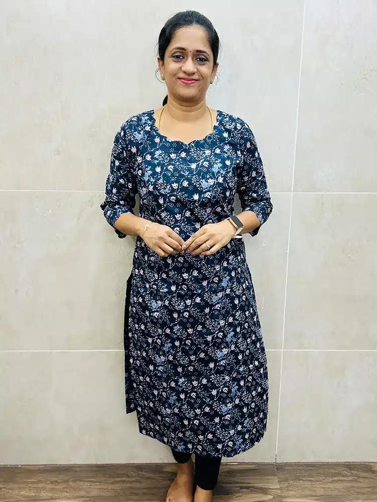 Navy Blue – Printed Jaipur cotton top (cotton lining) with scallop neck and sleeves (straight cut)