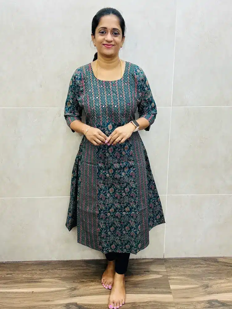 Printed Jaipur cotton top(cotton lining) with handworked yoke(panel cut Anarkali)