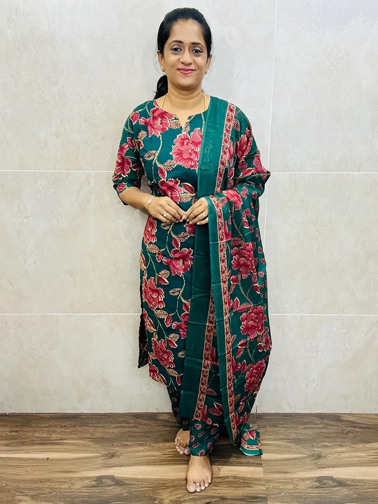 Printed jaipur cotton(cotton lining) top paired with printed cotton dupatta and cotton bottom (free size)