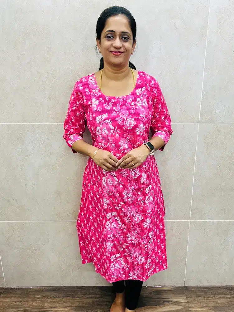 Printed Kantha cotton top (cotton lining) with Potli work on yoke (Aline pattern)