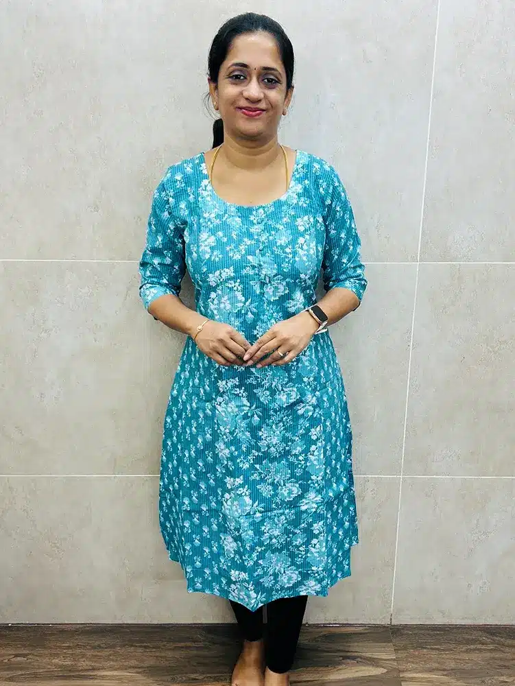 Printed Kantha cotton top (cotton lining) with Potli work on yoke (Aline pattern)