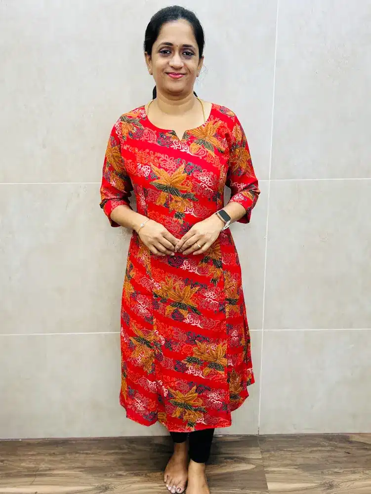 (Red)Printed premium Gaji silk top with crepe lining(Princess cut Aline pattern)