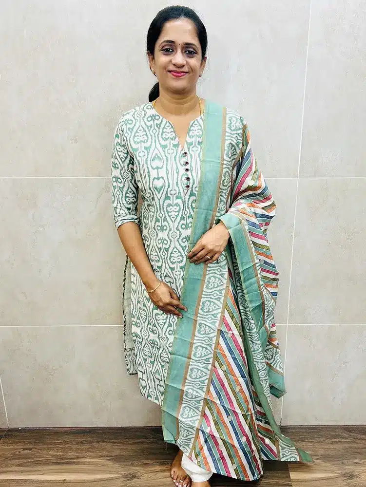 Printed premium muslin silk top (cotton lining) paired with printed muslin silk dupatta and silk bottom (straight cut)