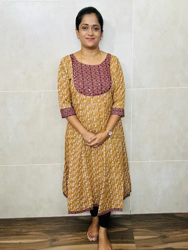 Printed pure cotton top with Handworked ajrakh patchwork on yoke(Anarkali pattern)