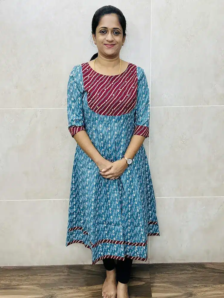 Printed pure cotton top with mirror worked yoke (Anarkali pattern)