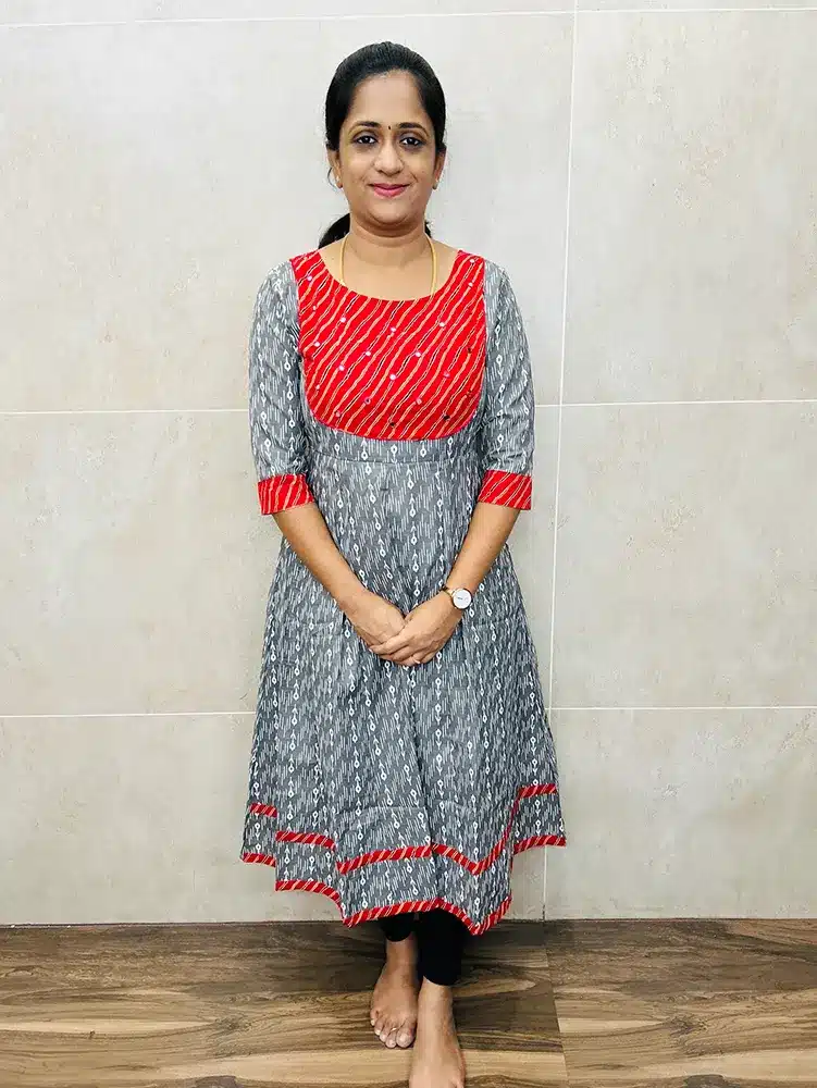 Printed pure cotton top with mirror worked yoke (Anarkali pattern)