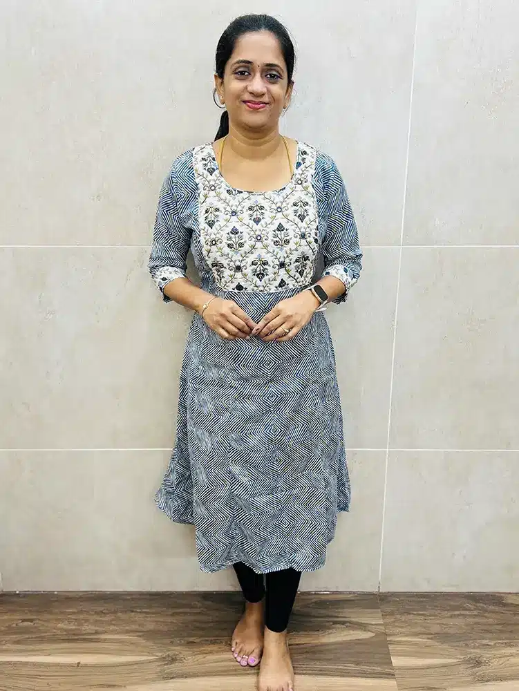 Printed Rayon top (crepe lining) with handworked yoke (Panel cut Anarkali)