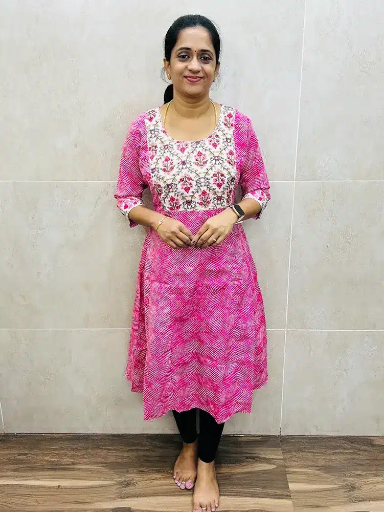 Printed Rayon top (crepe lining) with handworked yoke (Panel cut Anarkali)