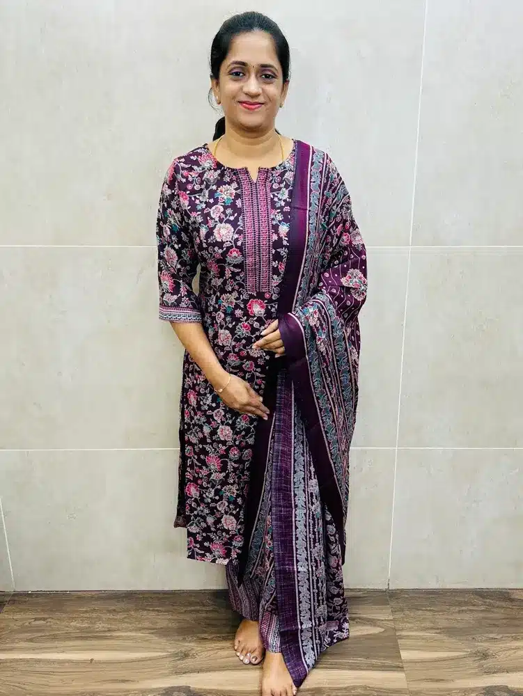 Printed premium Rayon top paired with printed rayon dupatta and rayon bottom(straight cut)