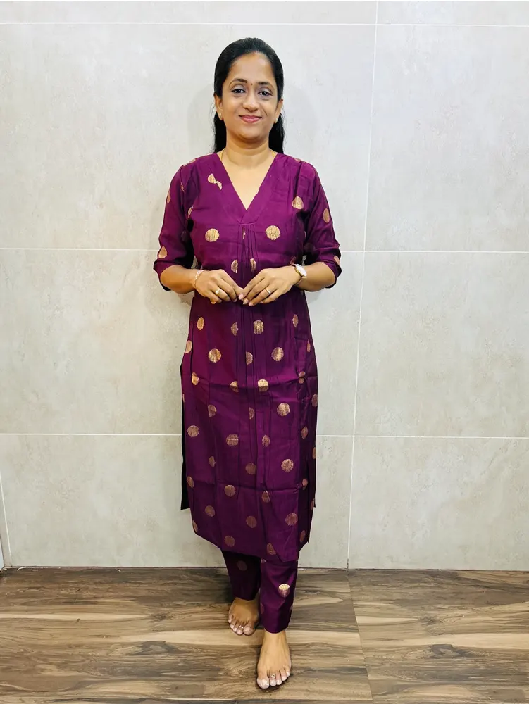 (Majenta purple)Printed silk cotton top(cotton lining)paired with printed silk cotton bottom(straight cut)