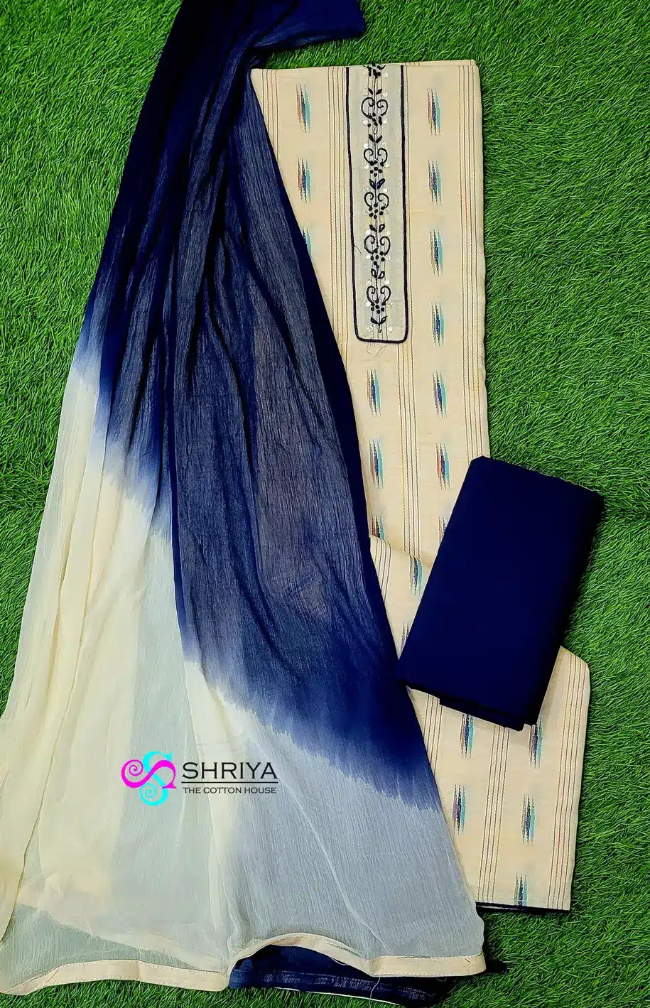 Pure cotton top paired with a chiffon dupatta and cotton bottom