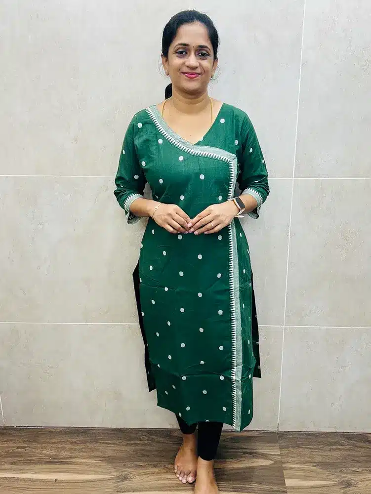 Mehandhi Green – Pure cotton top (cotton lining) with all over thread weaving buttas and potli work (straight cut)