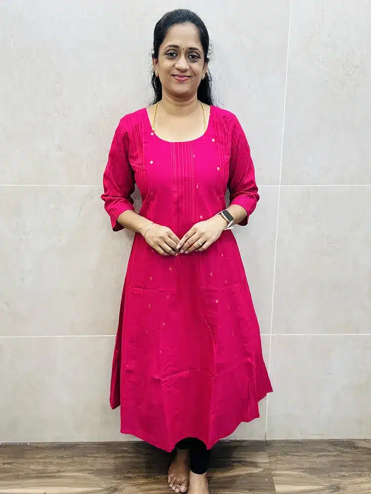 Rani Pink – Pure cotton top (cotton lining) with allover zari thread weavings(Anarkali Panel cut pattern)