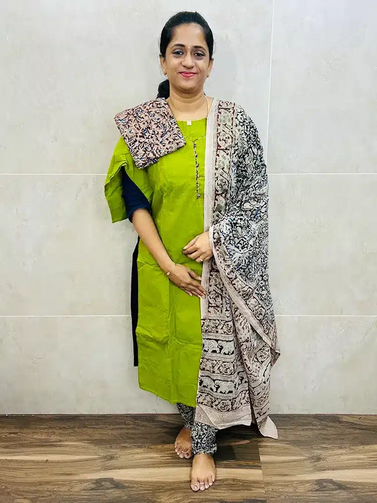 Pure cotton top (cotton lining) paired with Kalamkari dupatta and Kalamkari bottom (straight cut)