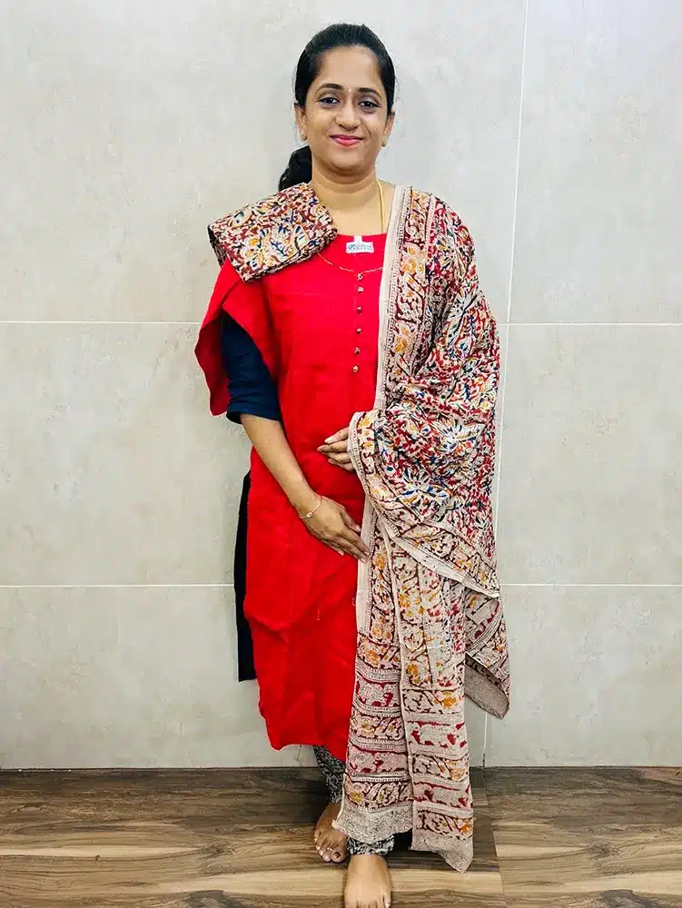 Pure cotton top (cotton lining) paired with Kalamkari dupatta and Kalamkari bottom (straight cut)
