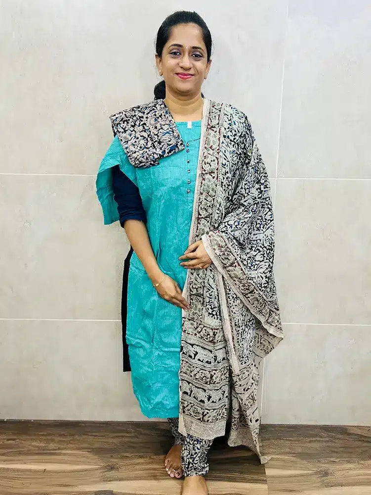 Pure cotton top (cotton lining) paired with Kalamkari dupatta and Kalamkari bottom (straight cut)
