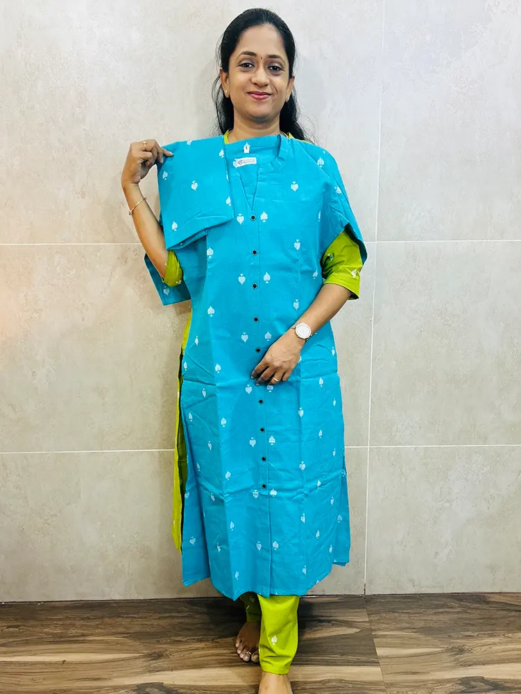 Pure handloom cotton top (cotton lining) paired with handloom cotton bottom (Free size)