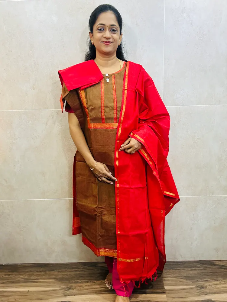 Pure handloom cotton top (cotton lining) paired with cotton dupatta and cotton bottom (free size)