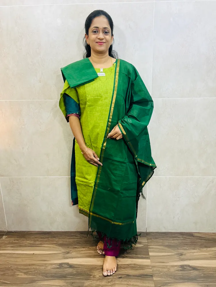 Pure handloom cotton top(cotton lining)paired with handloom cotton dupatta and cotton bottom(free size)
