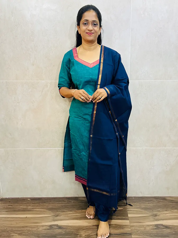 Pure handloom cotton top(cotton lining)paired with handloom cotton dupatta and cotton bottom(free size)