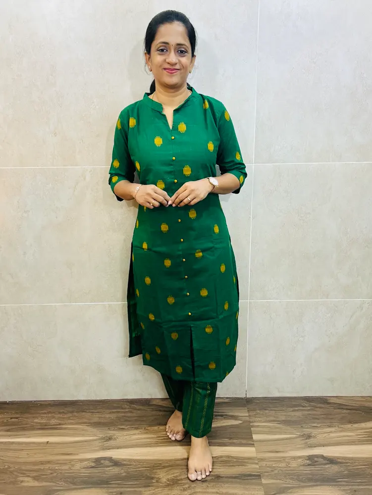 Pure handloom ikkat cotton top(cotton lining) paired with handloom cotton bottom(straight cut)