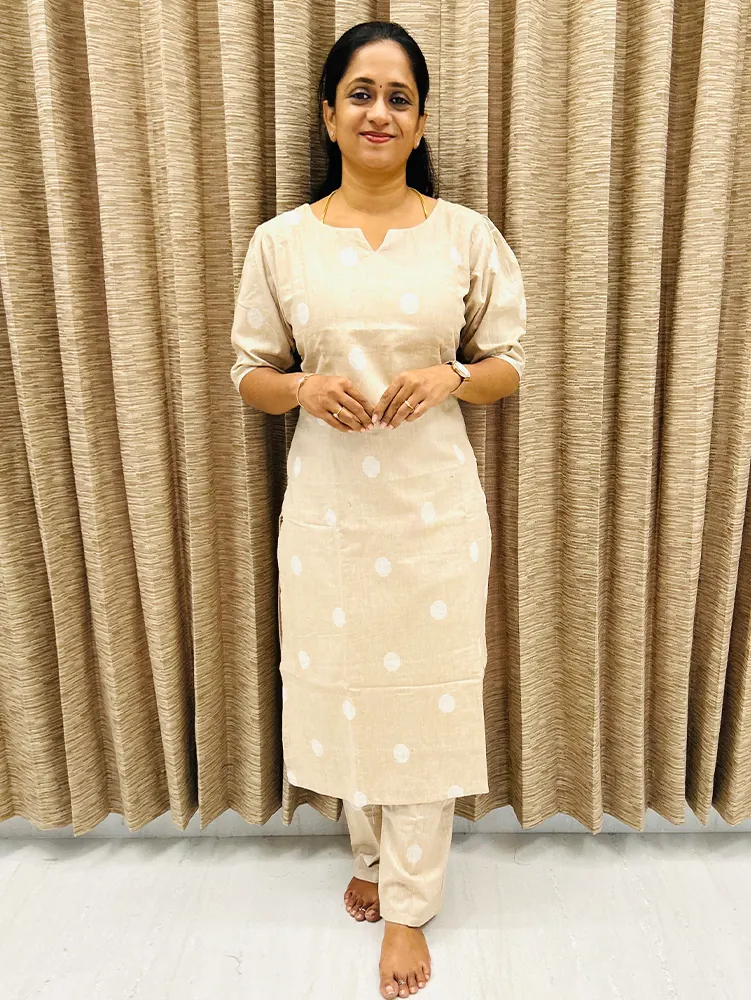 Pure handloom cotton top (cotton lining) with all over weaving paired with Handloom cotton bottom (semi palazzo)