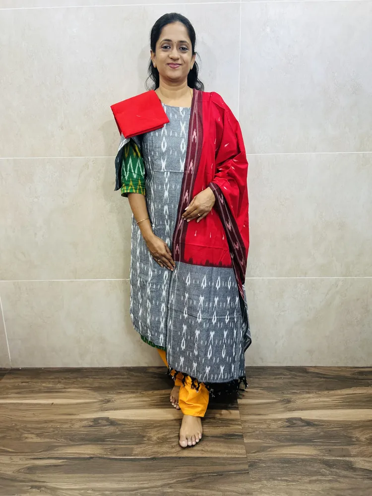 Pure handloom Ikkat cotton top (cotton lining) paired with Ikkat cotton dupatta and cotton bottom (free size)