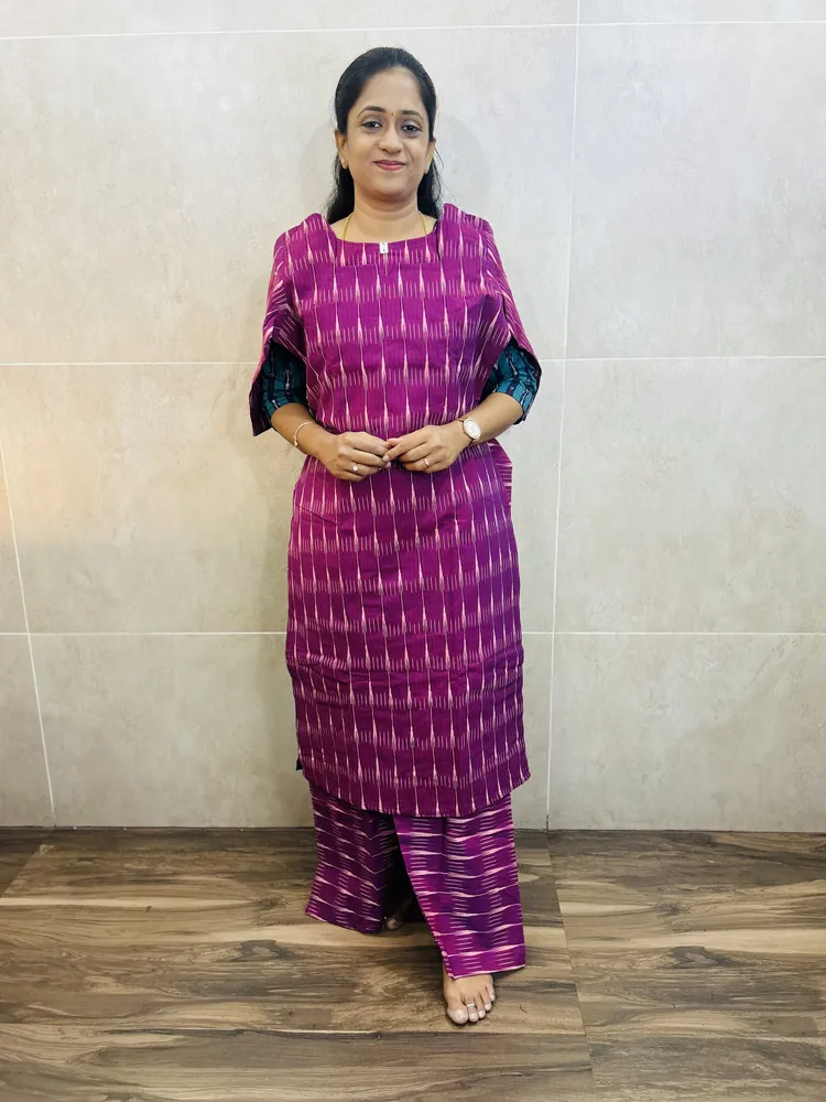 Pure handloom Ikkat cotton top (cotton lining) paired with Ikkat cotton bottom (free size)