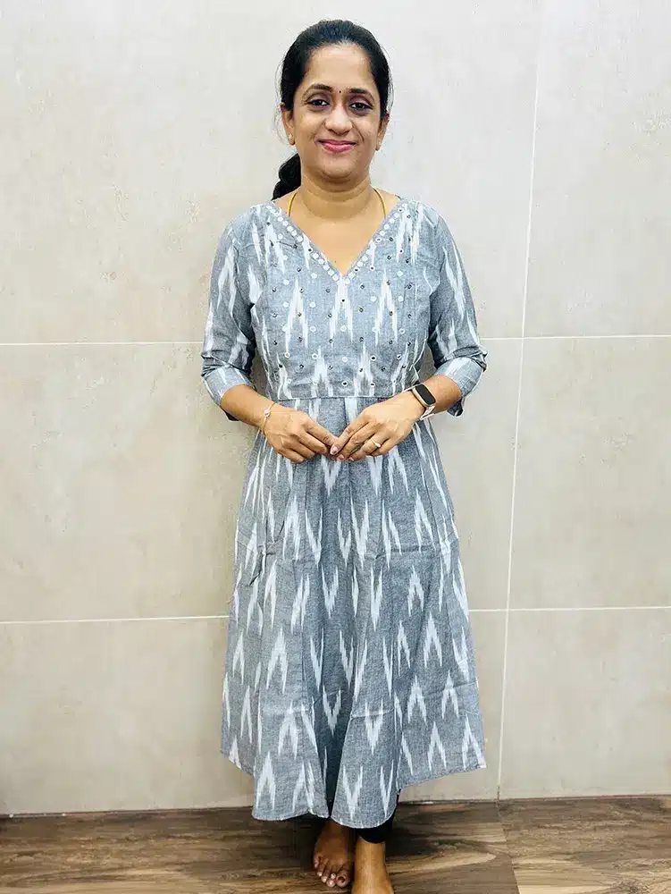 Pure Ikkat cotton top with handworked yoke (16 panel Anarkali)