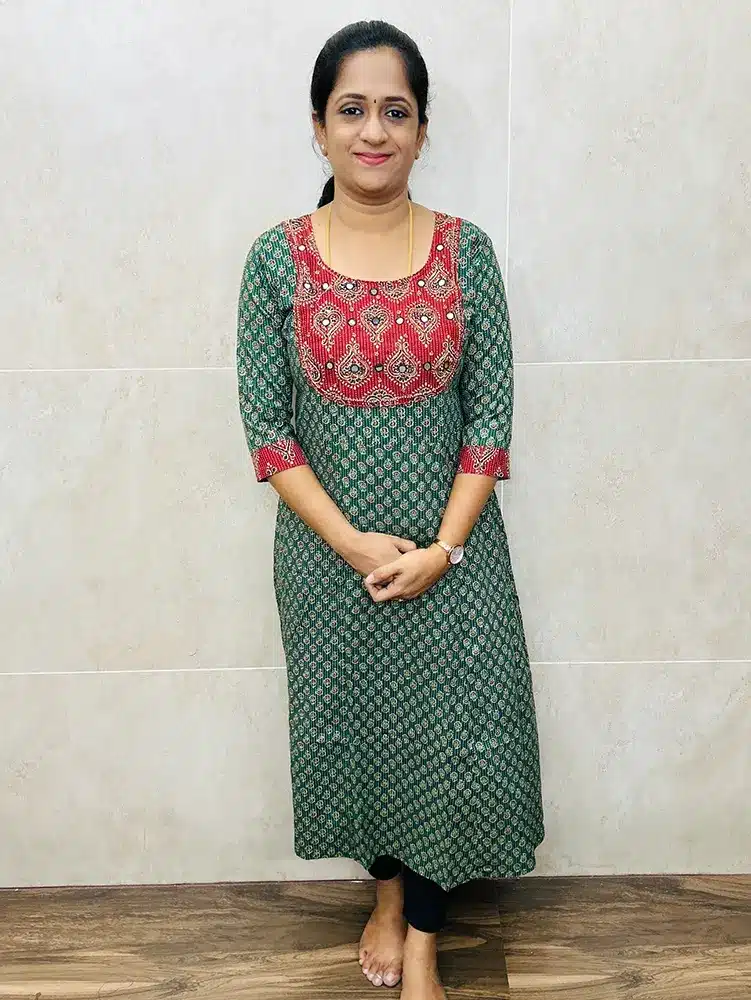 Pure Jaipur cotton top with handworked ajrakh patchwork on yoke (Anarkali pattern)