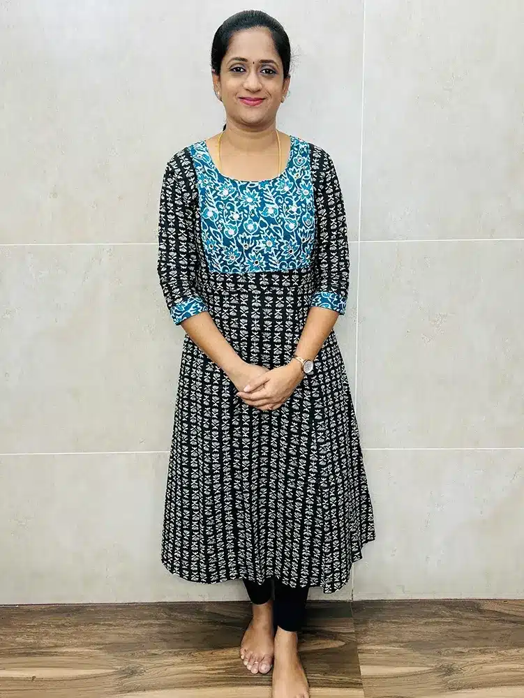 Pure Jaipur cotton top with handworked ajrakh patchwork on yoke (Anarkali pattern)