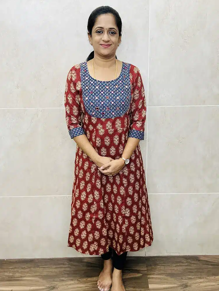 Pure Jaipur cotton top with handworked ajrakh patchwork on yoke (Anarkali pattern)