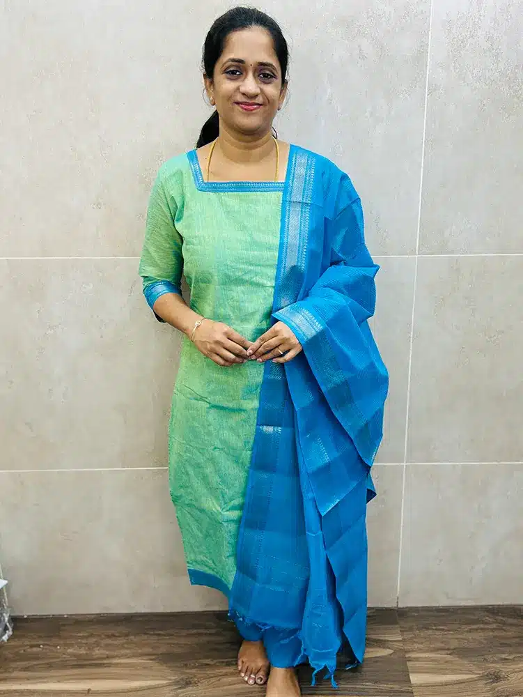 Pure Mangalagiri cotton top (cotton lining) paired with cotton dupatta and cotton bottom