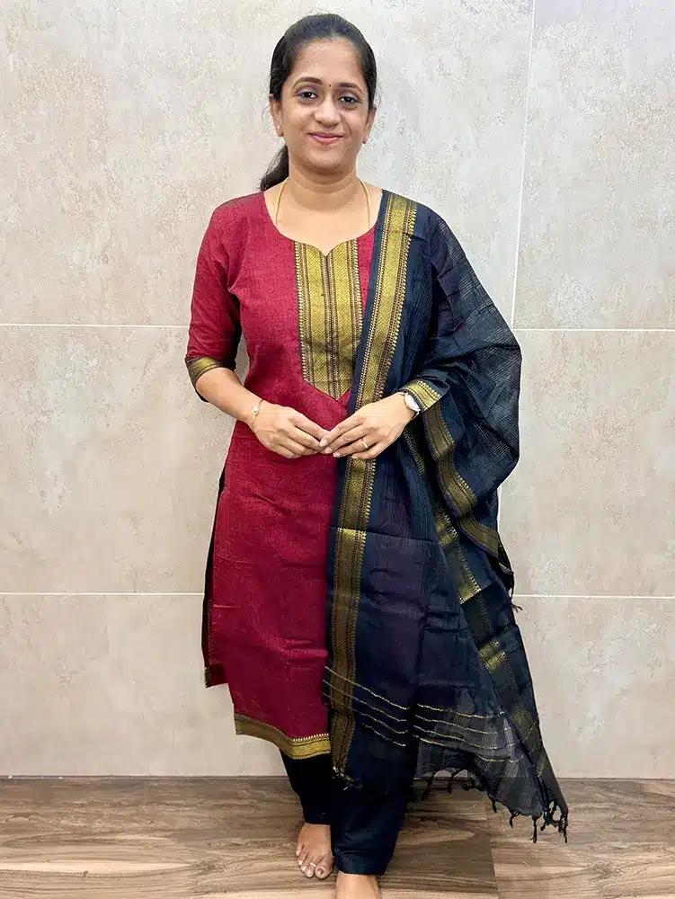 Pure Mangalagiri cotton top (cotton lining) paired with cotton dupatta and cotton bottom