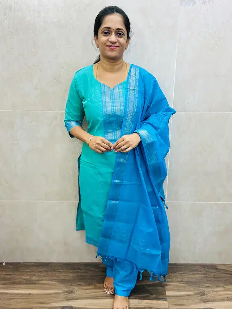 Pure Mangalagiri cotton top (cotton lining) paired with cotton dupatta and cotton bottom