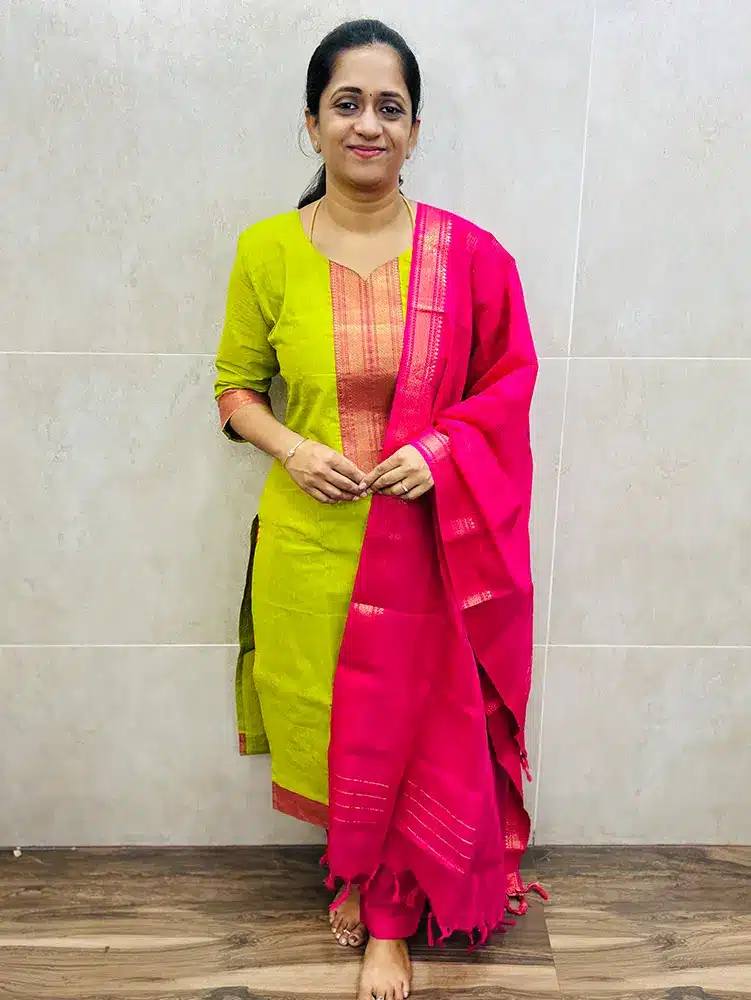 Pure Mangalagiri cotton top (cotton lining) paired with cotton dupatta and cotton bottom