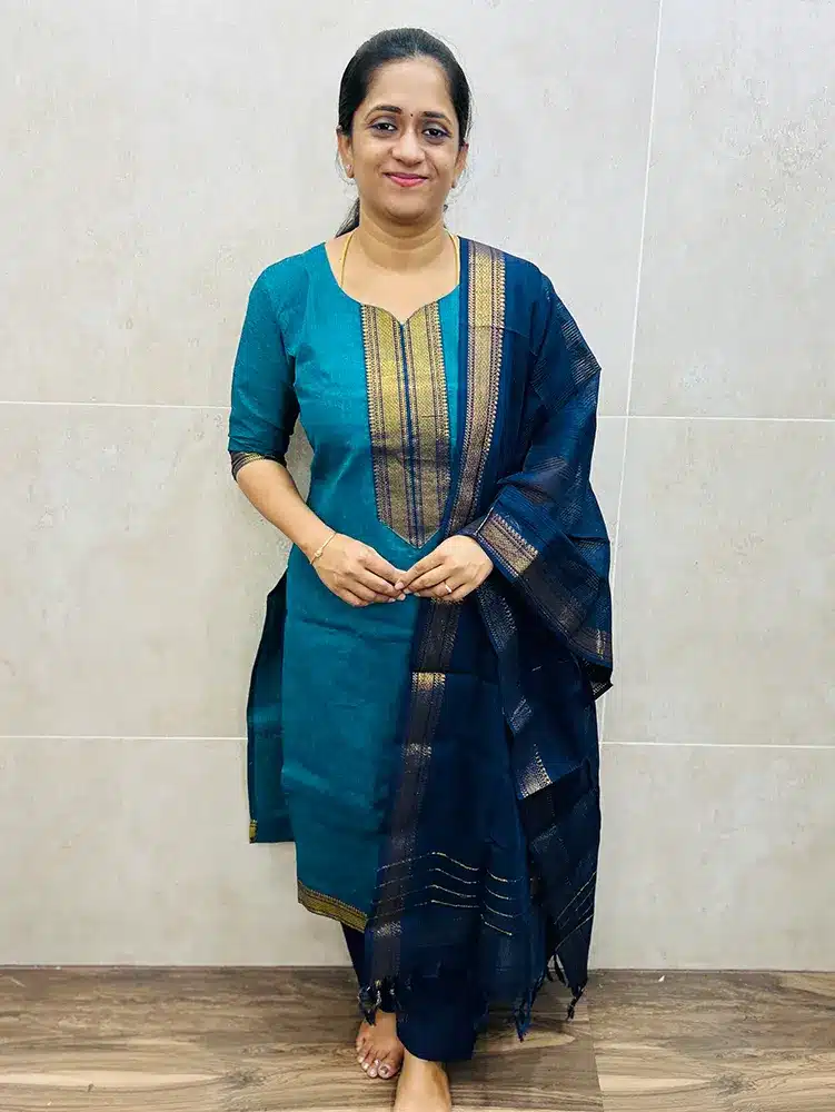 Pure Mangalagiri cotton top (cotton lining) paired with cotton dupatta and cotton bottom