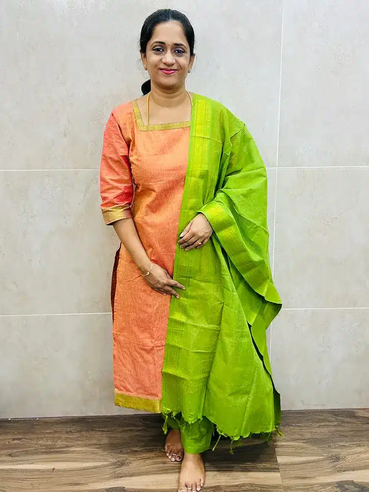 Pure Mangalagiri cotton top (cotton lining) paired with cotton dupatta and cotton bottom