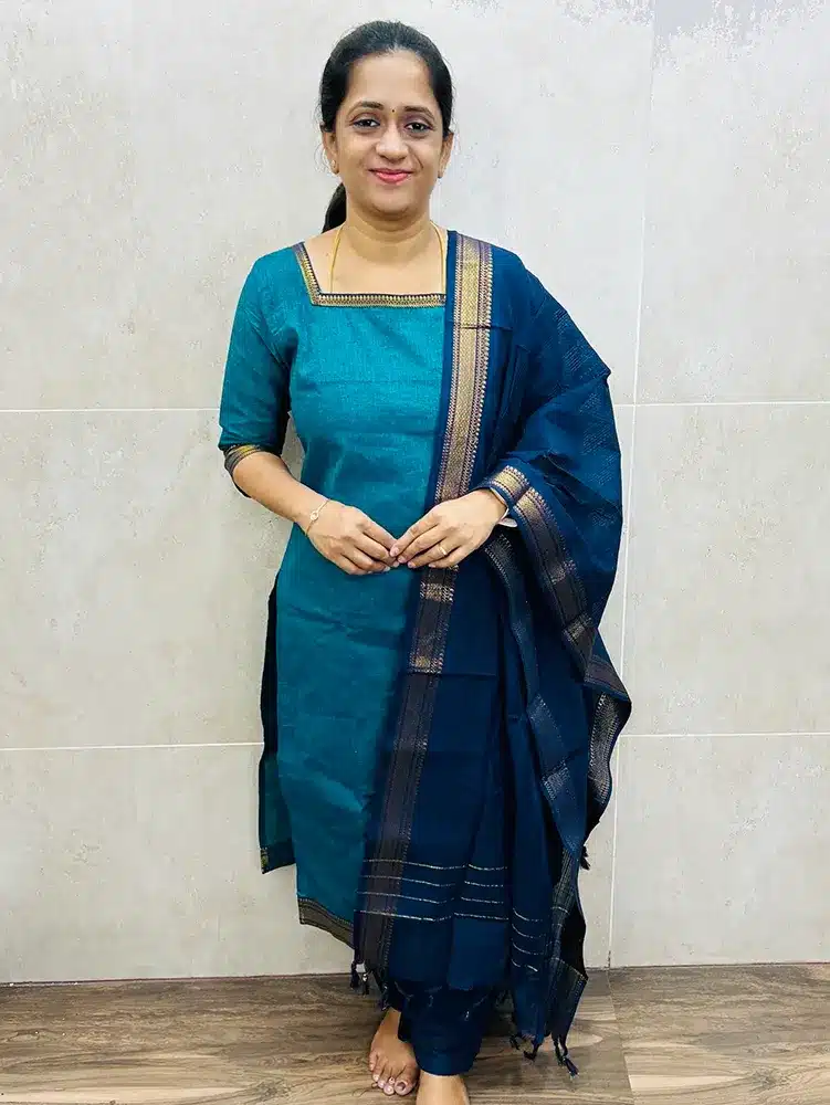 Pure Mangalagiri cotton top (cotton lining) paired with cotton dupatta and cotton bottom