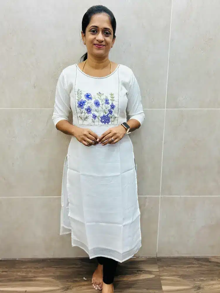 Soft Kota top(full crepe lining) with beautiful machine embroidered yoke(straight cut)