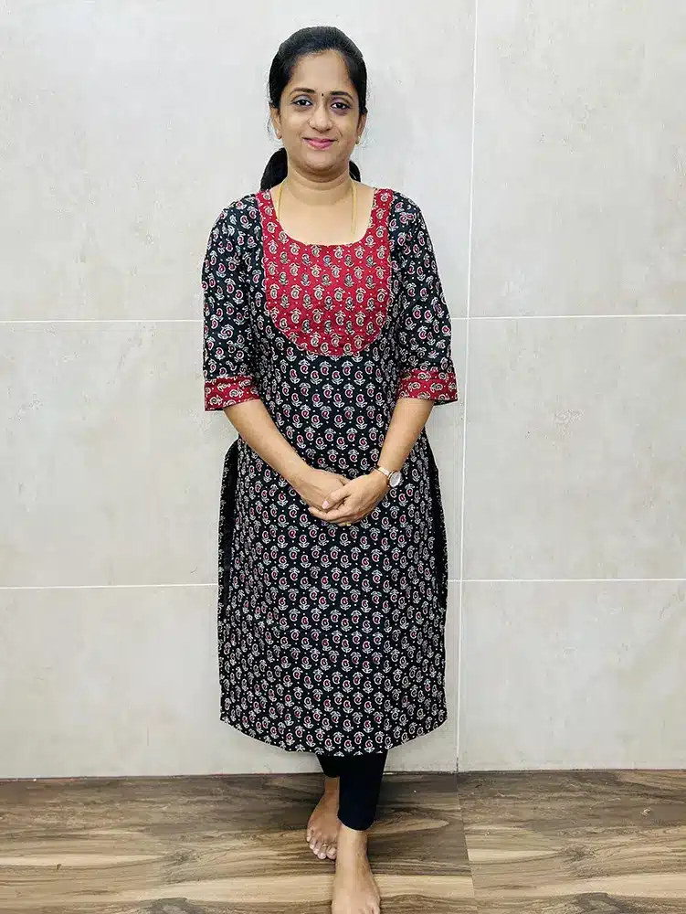 Ready to wear Ajrakh cotton top with handworked yoke with lining