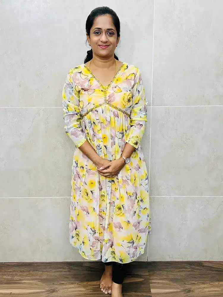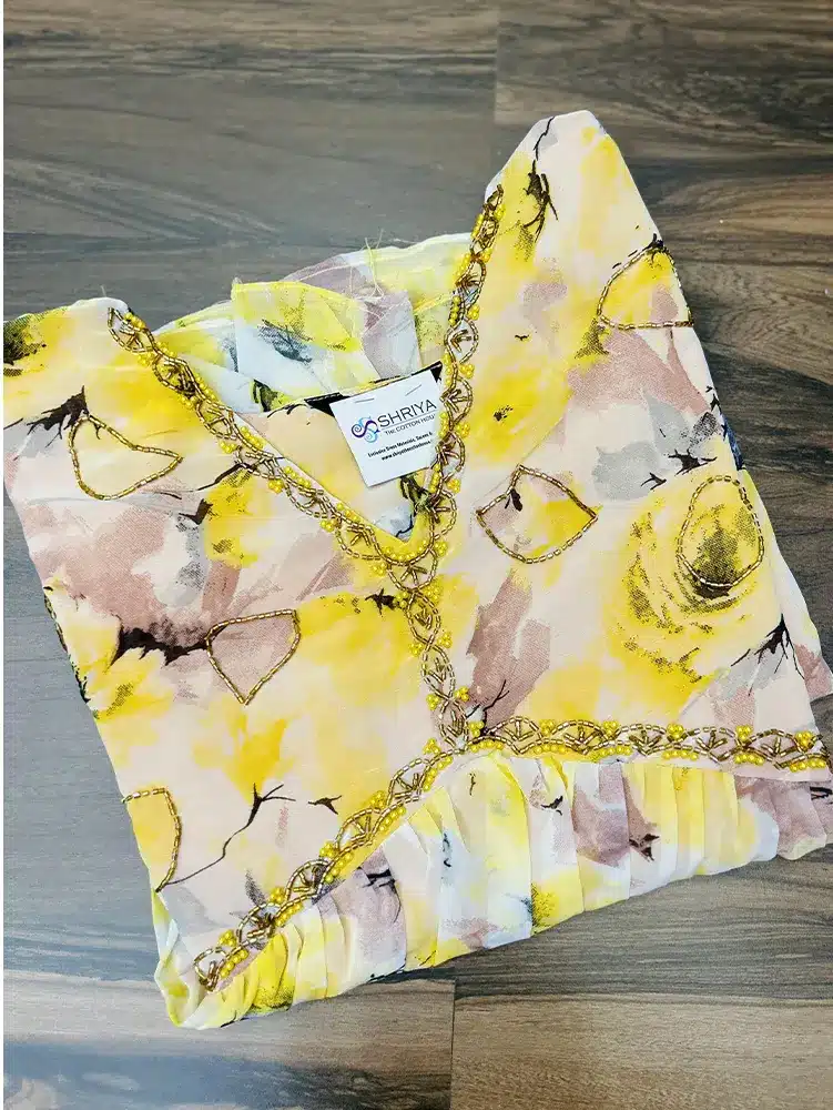 Ready to wear Alia cut Printed Georgette top with handworked yoke with lining