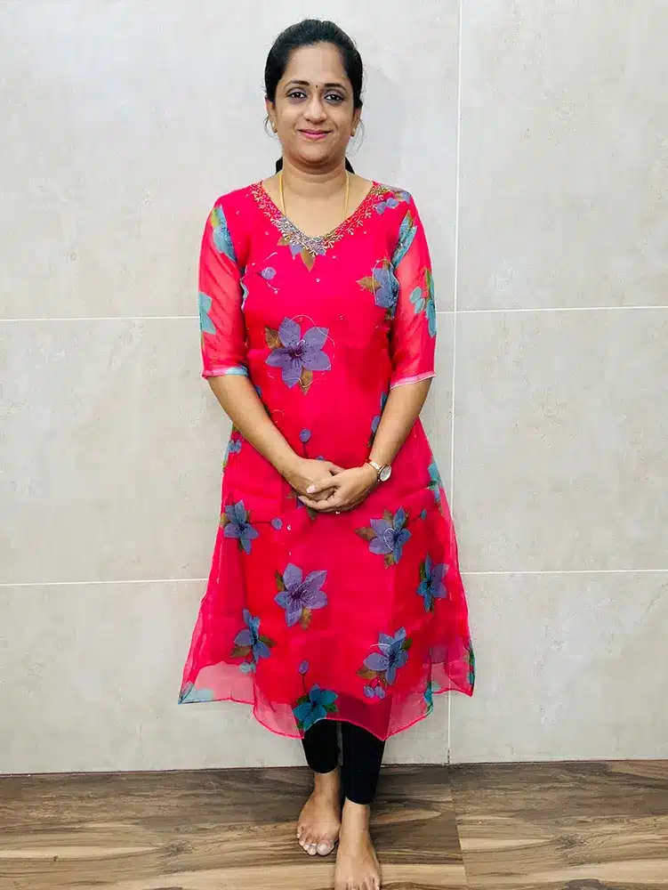 Ready to wear Digital printed Organza top with embroidered yoke (A-line pattern)