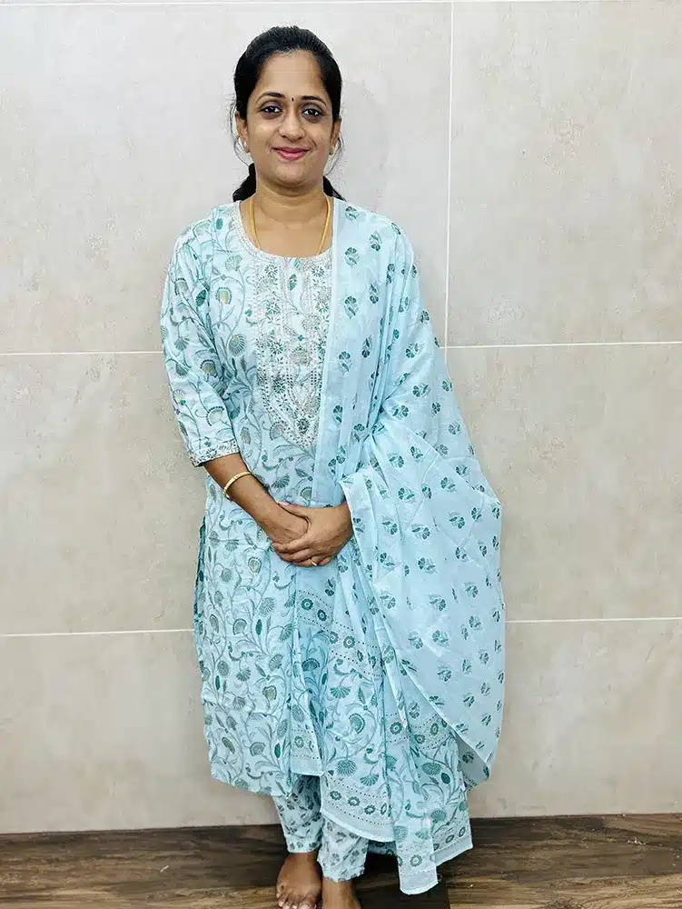 Ready to wear Printed Jaipur cotton top with embroidered yoke paired with printed cotton dupatta and cotton bottom