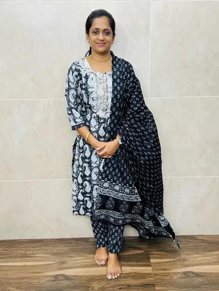 Ready to wear Printed Jaipur cotton top with embroidered yoke paired with printed cotton dupatta and cotton bottom