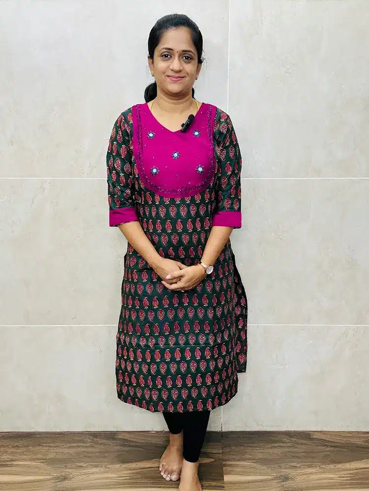 Ready to wear Pure cotton top with handworked slub silk patchwork on yoke