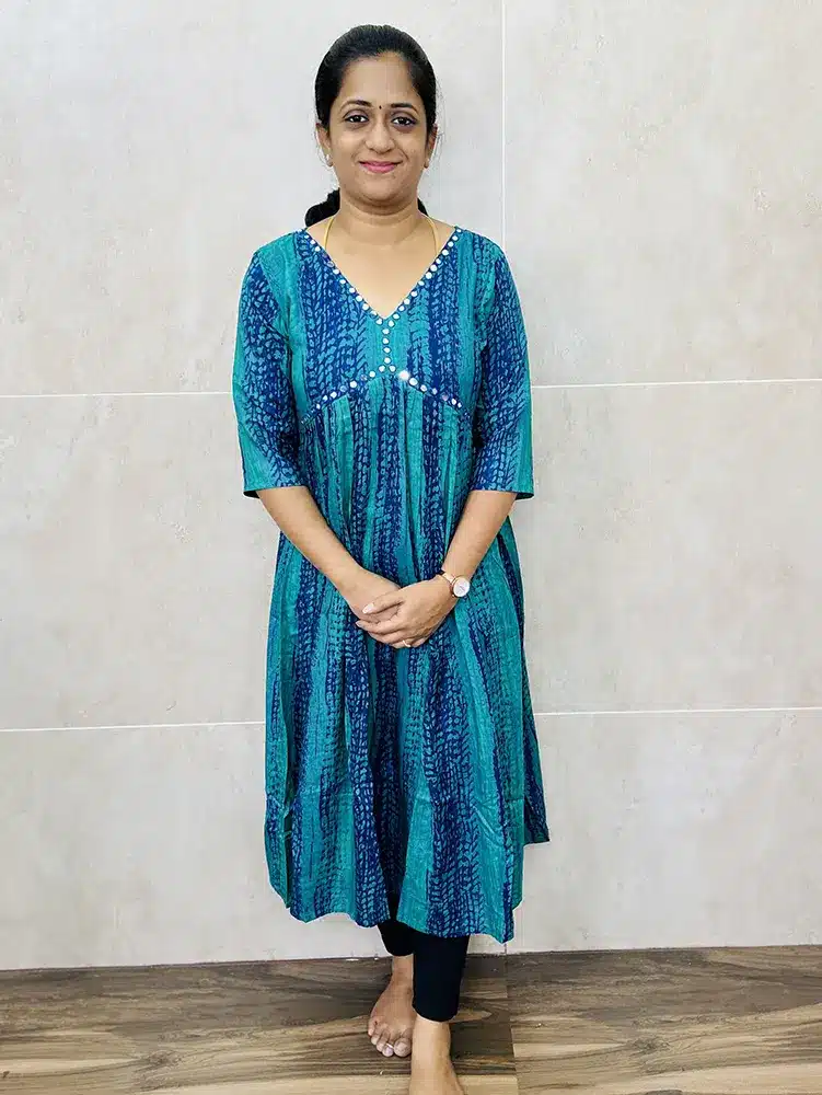 Shibori dyed Rayon Kurtis with mirror worked yoke (Alia Cut Pattern)