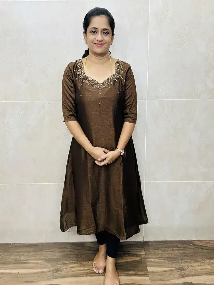 (Chocolate brown) Soft silk top with beautiful handwork on yoke with crepe lining (Aline pattern)