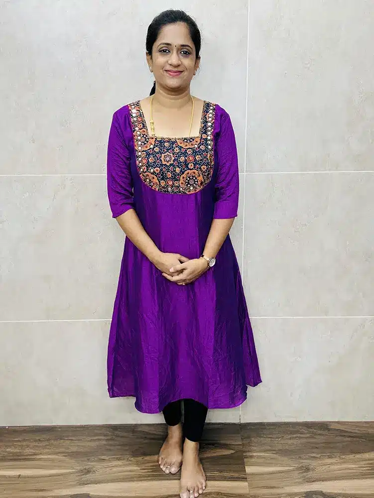 Soft silk top with beautiful handwork on yoke with crepe lining (Aline pattern)
